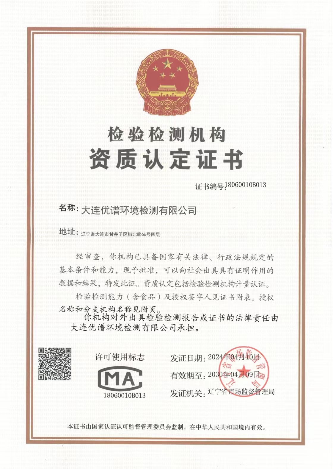 大連優(yōu)譜環(huán)境檢測有限公司環(huán)境檢測CMA資質在遼寧省質量技術監(jiān)督局網(wǎng)站上查詢。
